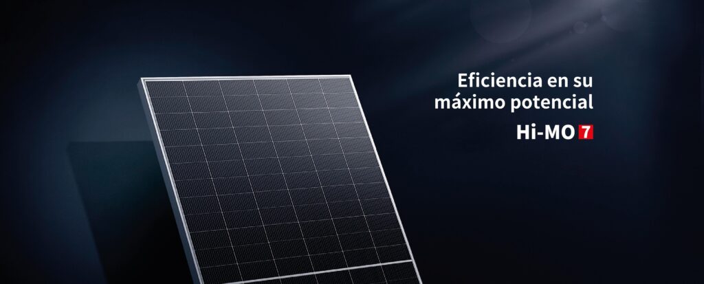 Modulo solar LONGI HIMO 7 Bifacial 615W con marco de aleación de aluminio anodizado.